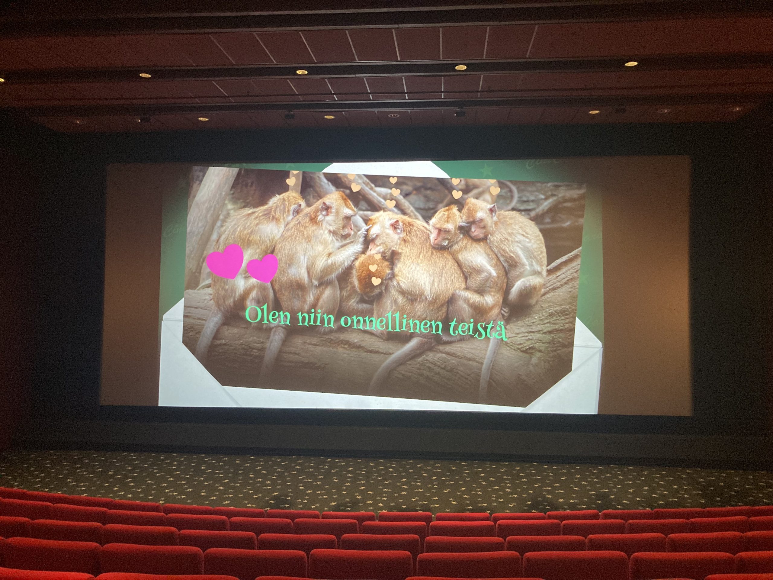 ”Ensimmäistä kertaa elokuvissa uusien ystävien kanssa!”