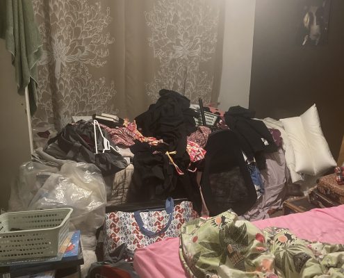 Pyydän poikaani jäämään niin pitkäksi aikaa, että äiti saa kynnet leikattua. Tai minun oma äiti tulee avuksi läjiä tuhoamaan. Äidit ovat tässä todella taitavia! Läjä kerrallaan oma koti palautuu hallittavaksi. Samalla myös elämä laajemminkin.